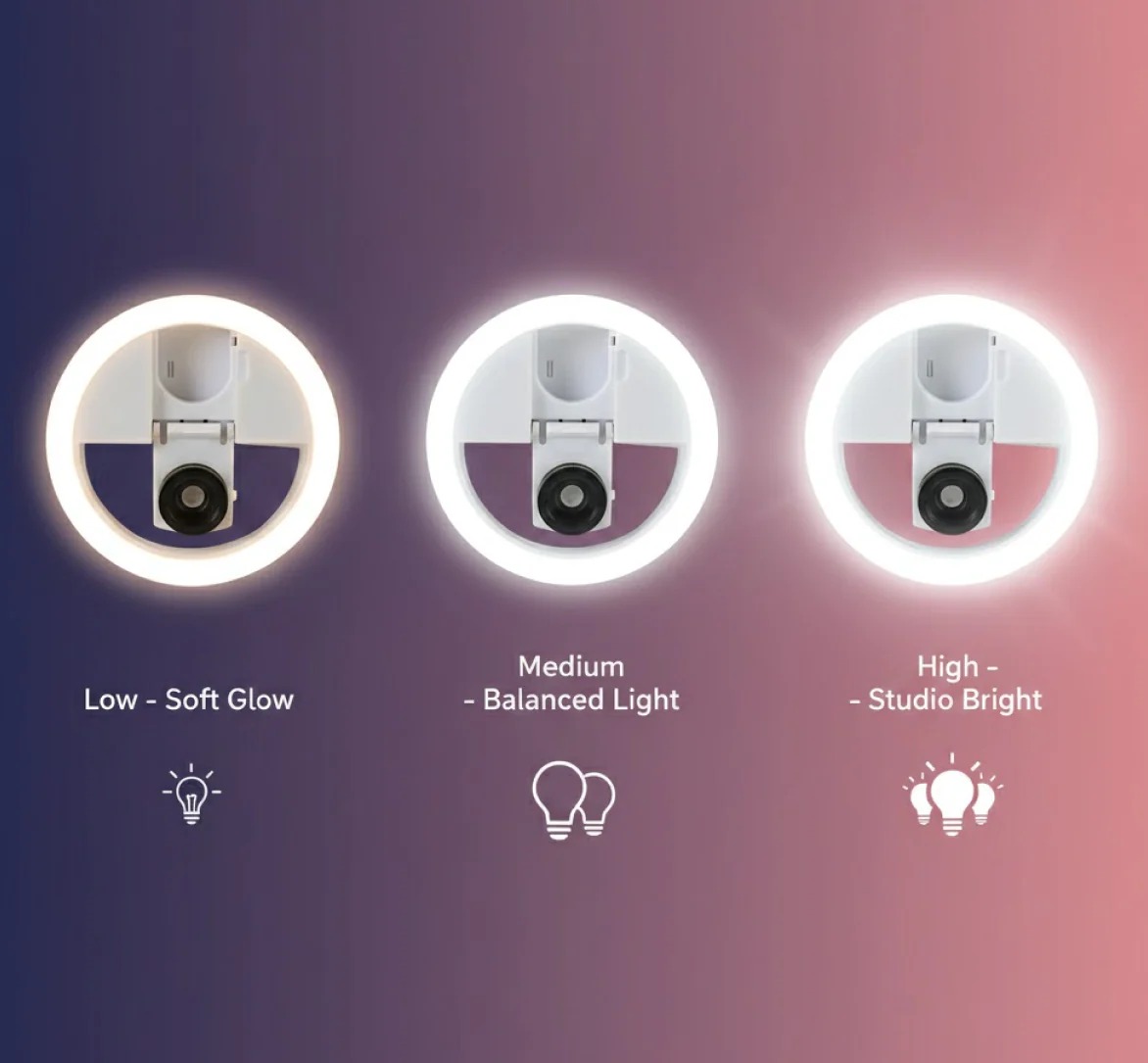 - Easy usage: enjoy your enhanced selfies. Clip the selfie ring on the phone and turn on the switch, choose the brightness you require.